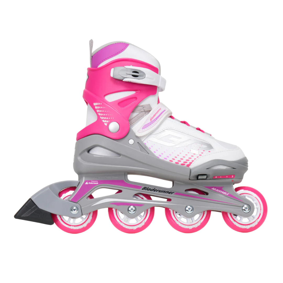 Phoenix G is a value-driven adjustable skate for kids. Backed by Rollerblade technology, this Bladerunner skate fits well and performs at just the right level. The sleek, lightweight structure helps with lateral support and the lining provides effective cushioning. Adjustable sizing expands the skate four full sizes with a push-button and 72mm Bladerunner wheels/ABEC 3 bearings provide speed control; brake is standard. Phoenix is a quality kids skate at a budget price.