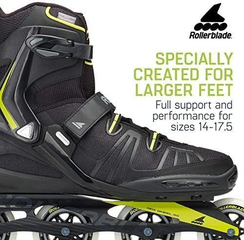 The RB XL is unique in its structure and frame design.  The boots and cuffs are strategically reinforced and an extruded aluminium frame with an ideal length for proper balance. This recreational inline skate is completely modified for the demands of the skater with a size 14-17.5 foot.